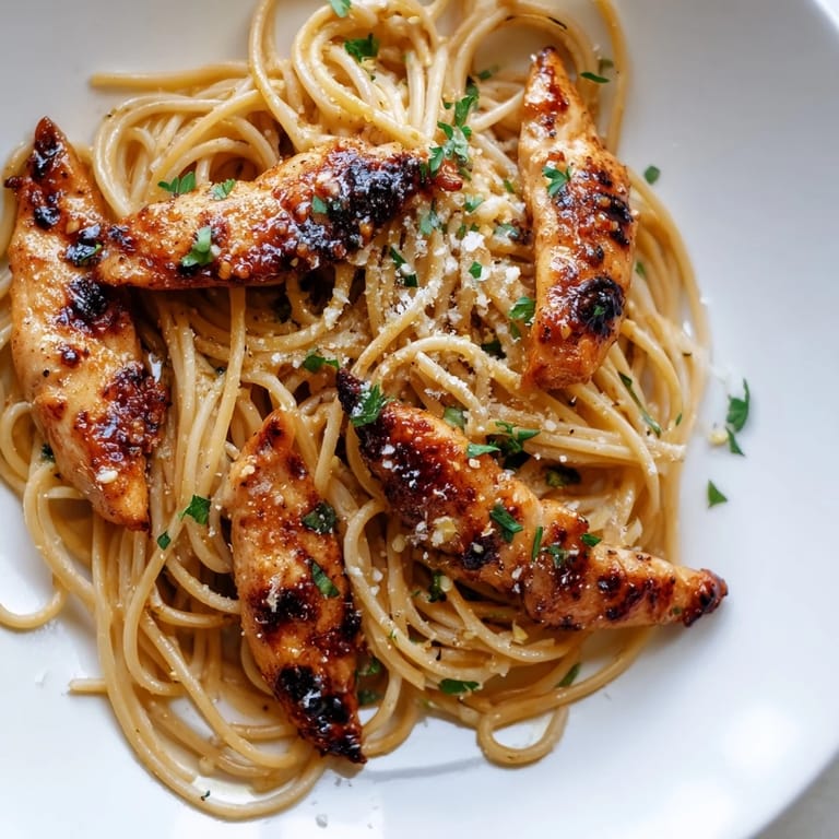 You can swap the chicken for shrimp and cut the cooking time in half, or leave out the protein entirely and add sautéed spinach or peas for a lighter version. I've used linguine and even rigatoni when I didn't have spaghetti, and both worked fine. If you want it richer, stir in a few tablespoons of heavy cream at the end. Sometimes I add capers for a briny kick, or swap parsley for fresh basil when I have it on hand.