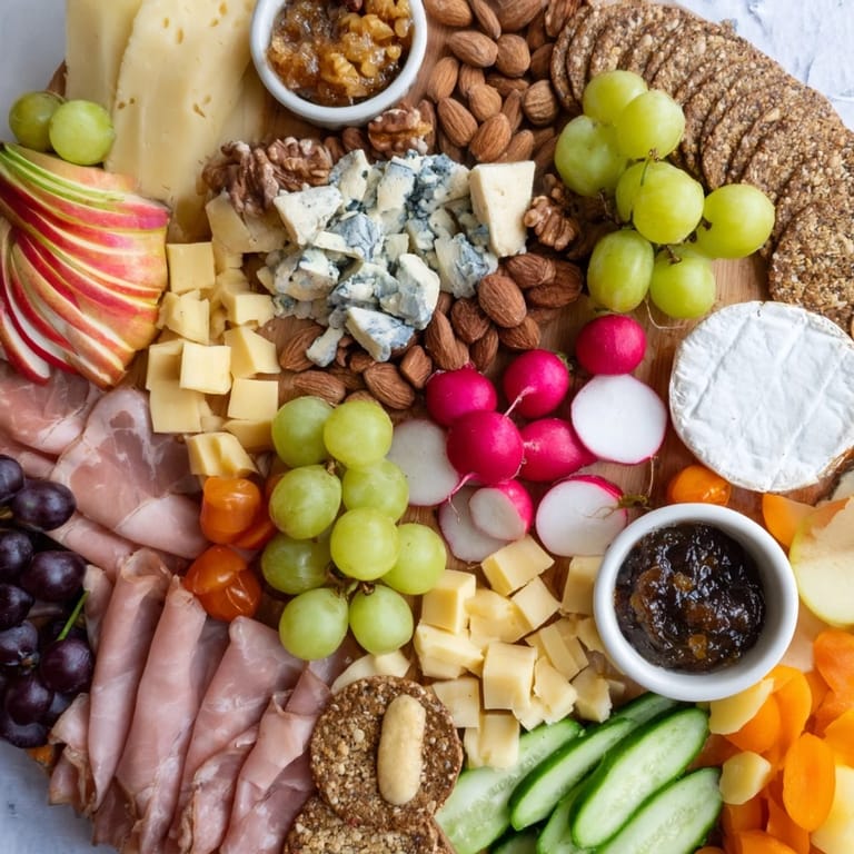 This snack board pairs beautifully with a crisp white wine or a light red such as Beaujolais. Perfect for leisurely appetizers or informal gatherings, it encourages guests to sample and share, making any occasion feel special and relaxed.