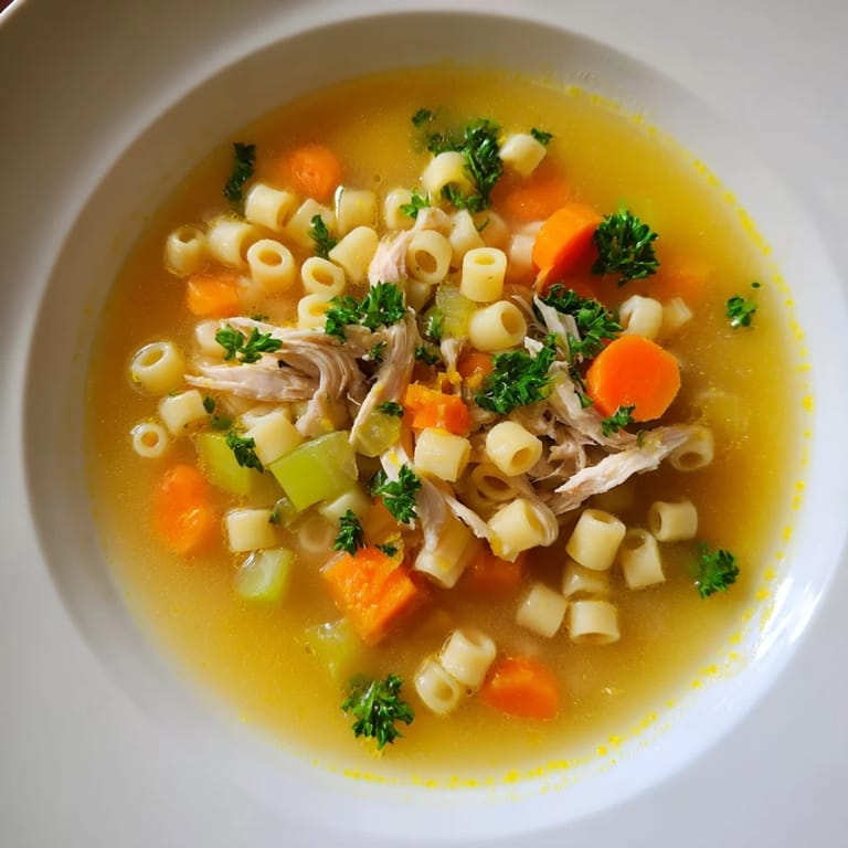 Save There's a moment during cold season when you realize soup isn't just food—it's a small act of self-care. I stumbled onto this chicken and ditalini combination one Wednesday evening when my sinuses felt like they were staging a rebellion, and I had almost nothing in the pantry except broth, pasta, and a knob of ginger that had been staring at me from the back of the fridge. Two hours later, I was cradling a warm bowl, watching the tiny pasta tubes catch the light, and feeling genuinely better in ways I couldn't quite explain.