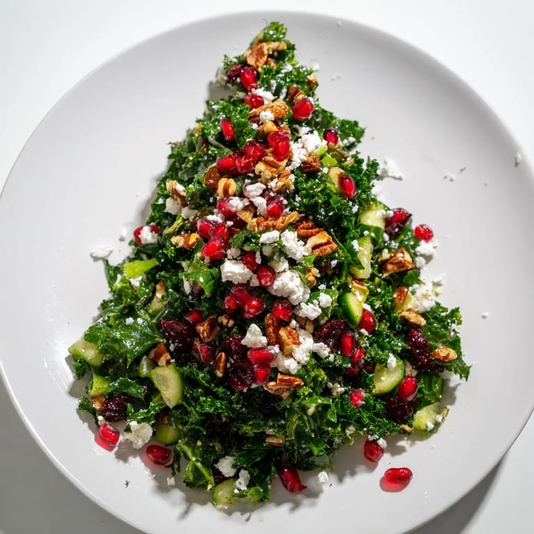 Shape the salad into a Christmas tree and decorate with extra pomegranate seeds and crumbled feta for a holiday touch.