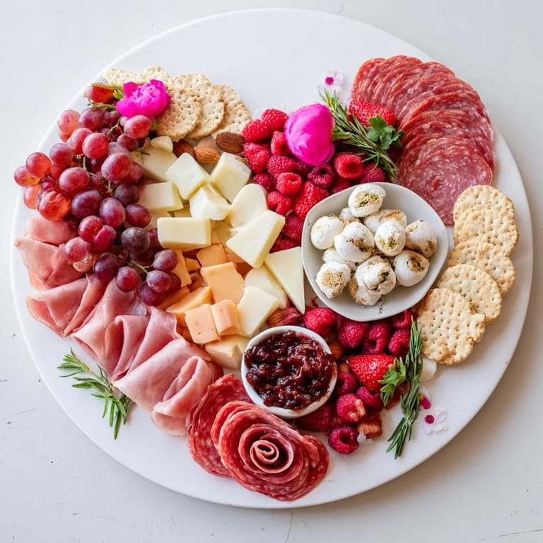 This elegant charcuterie board pairs beautifully with sparkling wine, rosé, or a light red wine. Serve as a romantic appetizer before dinner or as a special treat during celebrations like anniversaries, Valentine’s Day, or intimate gatherings with friends.