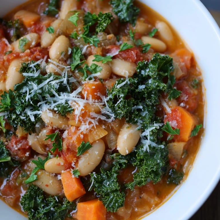 Save A hearty, rustic stew featuring tender beans, vibrant kale, and aromatic Italian flavors—perfect for a cozy, nutritious meal.