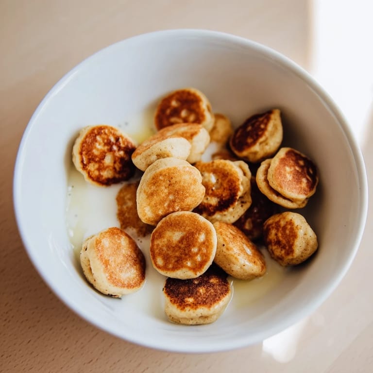 Save Adorable, bite-sized pancakes served like breakfast cereal, crispy on the outside and fluffy inside, perfect with milk, syrup, or fruit. These mini pancakes turn breakfast into a playful, delicious treat that you can enjoy in a bowl just like cereal.