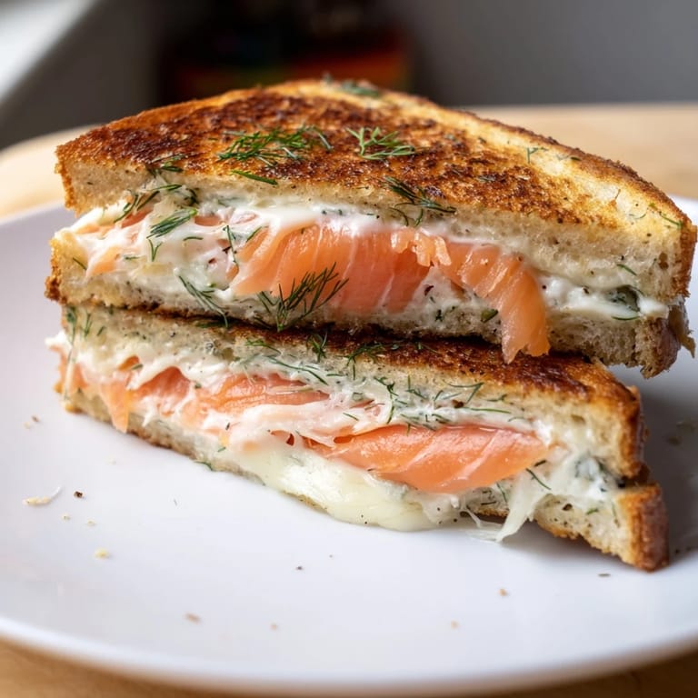Save There's something about the way smoked salmon catches the light that makes you feel like you're doing something special, even on a Tuesday morning when you're just making lunch. I discovered this sandwich by accident—I had cream cheese and smoked salmon in the fridge, a craving for grilled cheese, and absolutely nothing to lose. The moment that first bite happened, with the salmon giving way to warm, melty cheese and that subtle dill flavor threading through everything, I understood why this simple combination works so well. It's comfort food that doesn't apologize for being elegant.