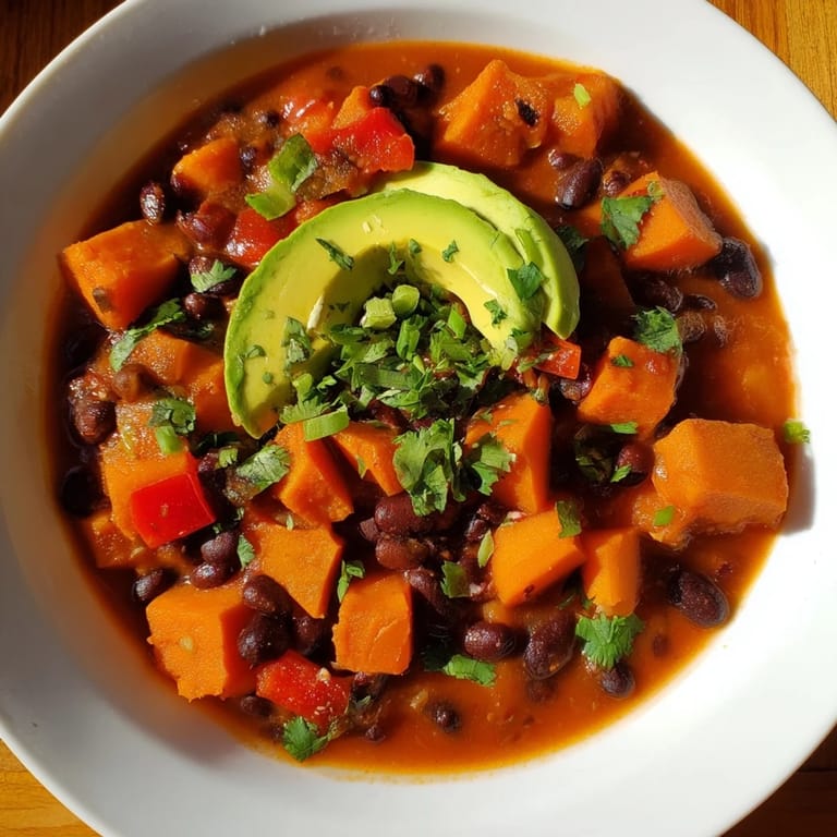 Save A hearty, vibrant vegetarian chili featuring sweet potatoes, black beans, and a blend of warming spices—perfect for a comforting weeknight meal.