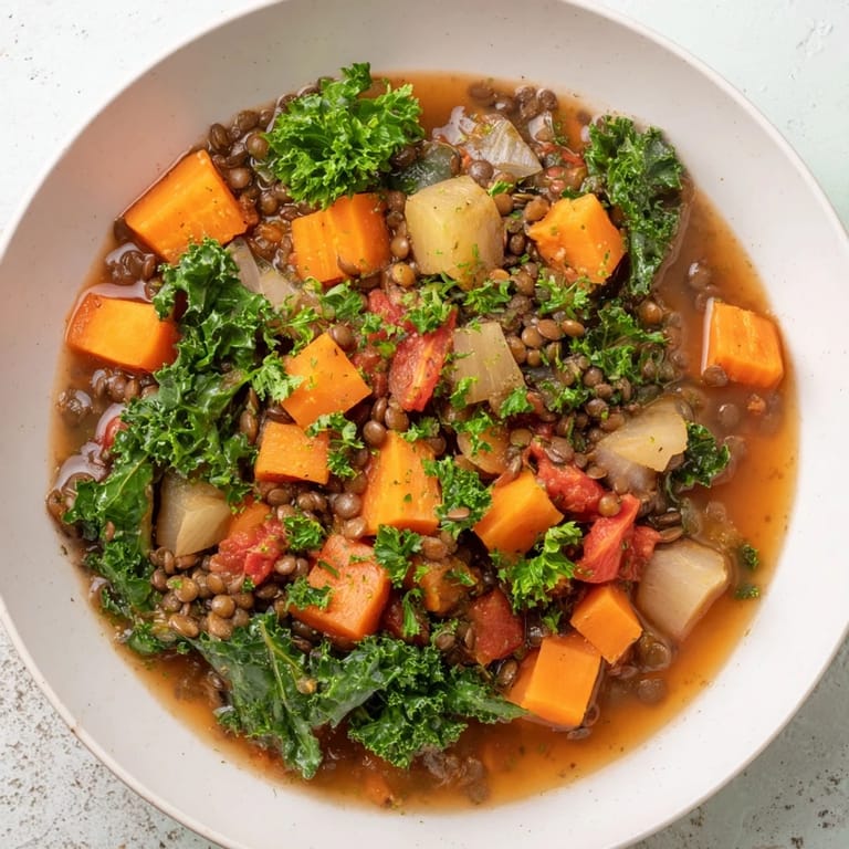 Save A hearty, nourishing soup packed with seasonal winter vegetables and protein-rich lentils, perfect for warming up on cold days.