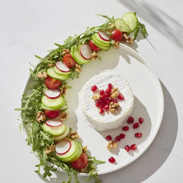 The magic of this dish lives entirely in the cheese wheel—it's the reason everyone will talk about this salad, the detail that lingers in memory. You're not just choosing a cheese, you're selecting the emotional heart of the plate. A creamy, yielding cheese invites guests to cut exploratory wedges, while something more assertive creates bolder flavor combinations with the vegetables. Watching someone taste the combination of sharp watermelon radish against the buttery softness of the cheese is watching a small revelation happen. The cheese also dictates your flavor direction: go herbed goat for tangy brightness, Camembert for classic elegance, or something blue for unexpected richness.